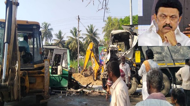 ”திருவள்ளூர் மாவட்டம், திருத்தணி வட்டம், பீரகுப்பம் மதுரா கே.ஜி.கண்டிகை கிராமத்தில் திருத்தணியில் இருந்து சோளிங்கர் நோக்கிச் சென்ற டிப்பர் லாரியும், ஆர்.கே.பேட்டையில் இருந்து திருத்தணி நோக்கிச் சென்ற அரசுப் பேருந்தும் எதிர்பாராதவிதமாக நேருக்கு நேர் மோதிய விபத்தில் பேருந்தில் பயணம் செய்த திருவள்ளூர் மாவட்டம், ஆர்.கே.பேட்டை வட்டம், அம்மையார்குப்பத்தைச் சேர்ந்த பாண்டுரங்கன் (வயது 60) த/பெ. சுப்பிரமணி, சிவானந்தம் (வயது 53) த/பெ.சண்முகம், மகேஷ் (வயது 40) த/பெ.கண்ணியப்பன் மற்றும் முரளி (வயது 38) த/பெ.பெரியசாமி ஆகிய நான்கு நபர்கள் சம்பவ இடத்திலேயே உயிரிழந்தனர் என்ற துயரமான செய்தியைக் கேட்டு மிகவும் அதிர்ச்சியும் வேதனையும் அடைந்தேன்.