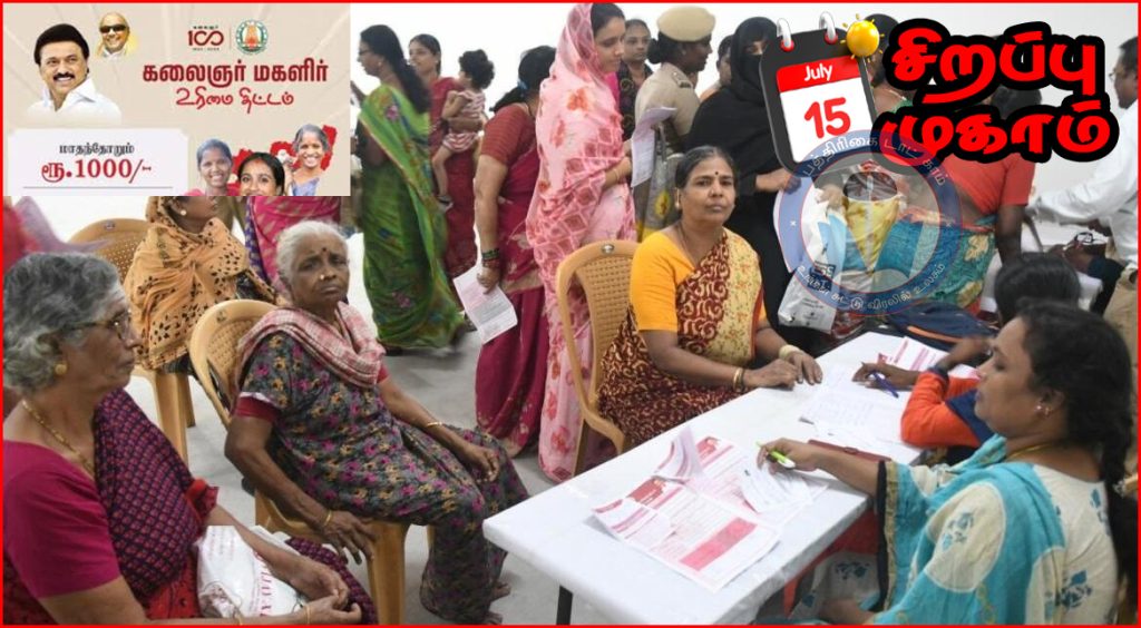 அதுபோல,  கலைஞர் மகளிர் உரிமைத்தொகை திட்டத்தில் விடுபட்ட, தகுதியுள்ள பெண்கள் ஜூலை 15-ம் தேதி முதல் விண்ணப்பிக்கலாம் என முதல்வர் தெரிவித்துள்ளார். இதற்காக, ஜூலை 15-ம் தேதி தமிழகம் முழுவதும் 10 ஆயிரம் இடங்களில் சிறப்பு முகாம்கள் நடத்தப்படுகின்றன. தகுதியுள்ள பெண்கள் அனைவரும் விண்ணப்பிக்கலாம்.