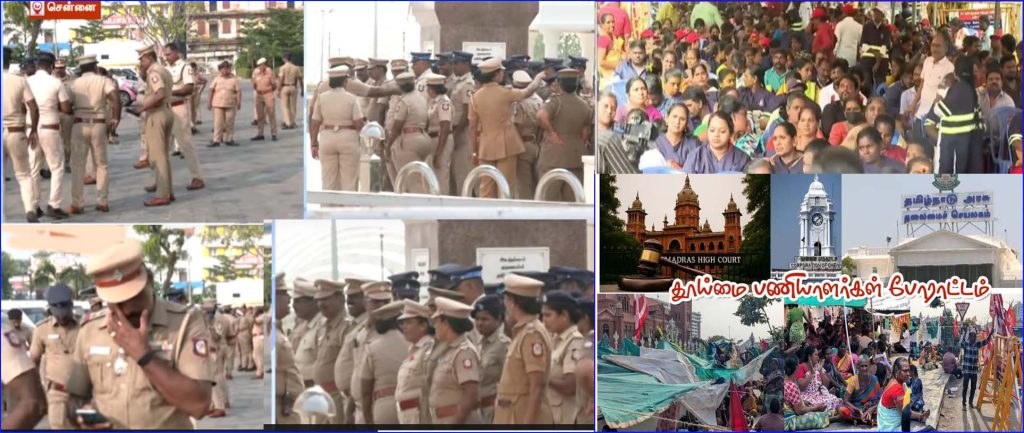 ரிப்பன் பில்டிங்கில் போராட்டம் நடத்த காவல்துறை அனுமதி மறுத்த நிலையில், ரிப்பன் பில்டிங் வெளியே சாலையில் அமர்ந்து போராடி வந்தனர். இந்த போராட்டத்தை நீதிமன்ற உத்தரவின் பேரில், போலீசார் இரவோடு இரவாக வலுக்கட்டாயகமாக தடுத்து நிறுத்தி, பலரை கைது செய்தனர். இது மக்களிடையே பேசும்பொருளாக மாறியது.
