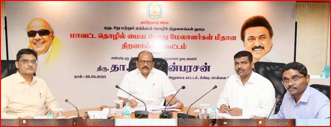 இதுகுறித்து அவர் வெளியிட்டுள்ள அறிக்கையில், “இன்று 26.08.2025 சென்னை கிண்டி சிட்கோ அலுவலக வளாகத்தில் மாண்புமிகு குறு,சிறு மற்றும் நடுத்தர தொழில் நிறுவனங்கள் துறை அமைச்சர் தா.மோ.அன்பரசன் அவர்கள் தலைமையில் மாவட்ட தொழில் மையங்களின் பொது மேலாளர்களுடன் துறை சார்ந்த ஆய்வு கூட்டம் நடைபெற்றது.