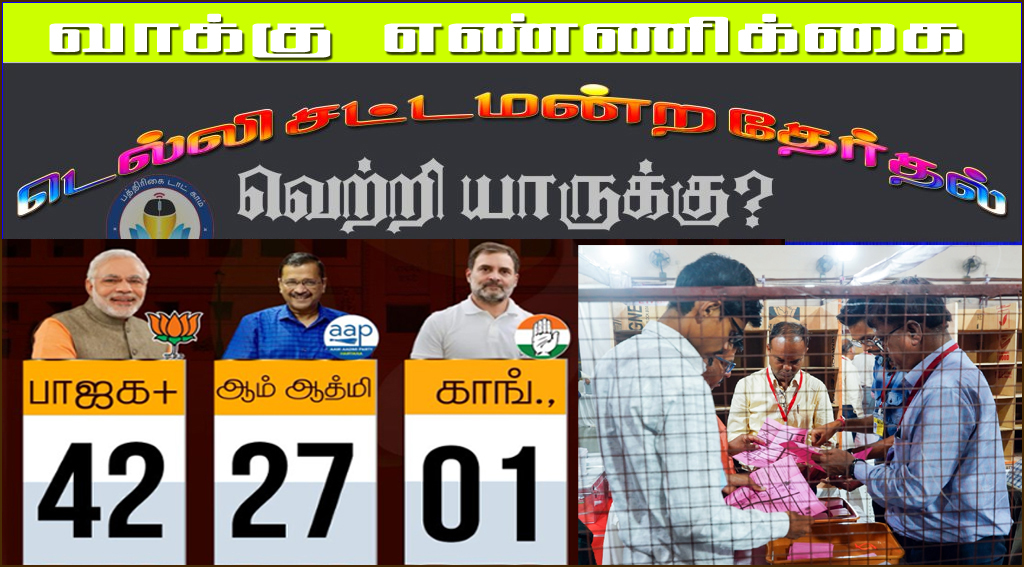 70 தொகுதிகளைக் கொண்ட டெல்லியில் ஆட்சியை பிடிக்க ஆம்ஆத்மி, காங்கிரஸ், பாரதிய ஜனதா கட்சிகளுக்கு இடையே மும்முணை போட்டி நடைபெற்று வருகிறது. அங்கு பிப்ரவரி 5ந்தேதி அன்று காலை 8 மணிக்க வாக்குப்பதிவு தொடங்கி மாலை 6 மணிக்கு முடிவடைந்ததது. மொத்தமுள்ள 70 தொகுதிகளில் 762 வேட்பாளா்கள் களத்தில் இருந்தனர்.