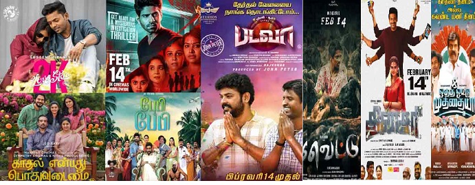 வரும் 14 ஆம் தேதி அன்று காதலர் தினத்தையொட்டி 11 தமிழ் திரைப்படங்கள் வெளியாக உள்ளன.