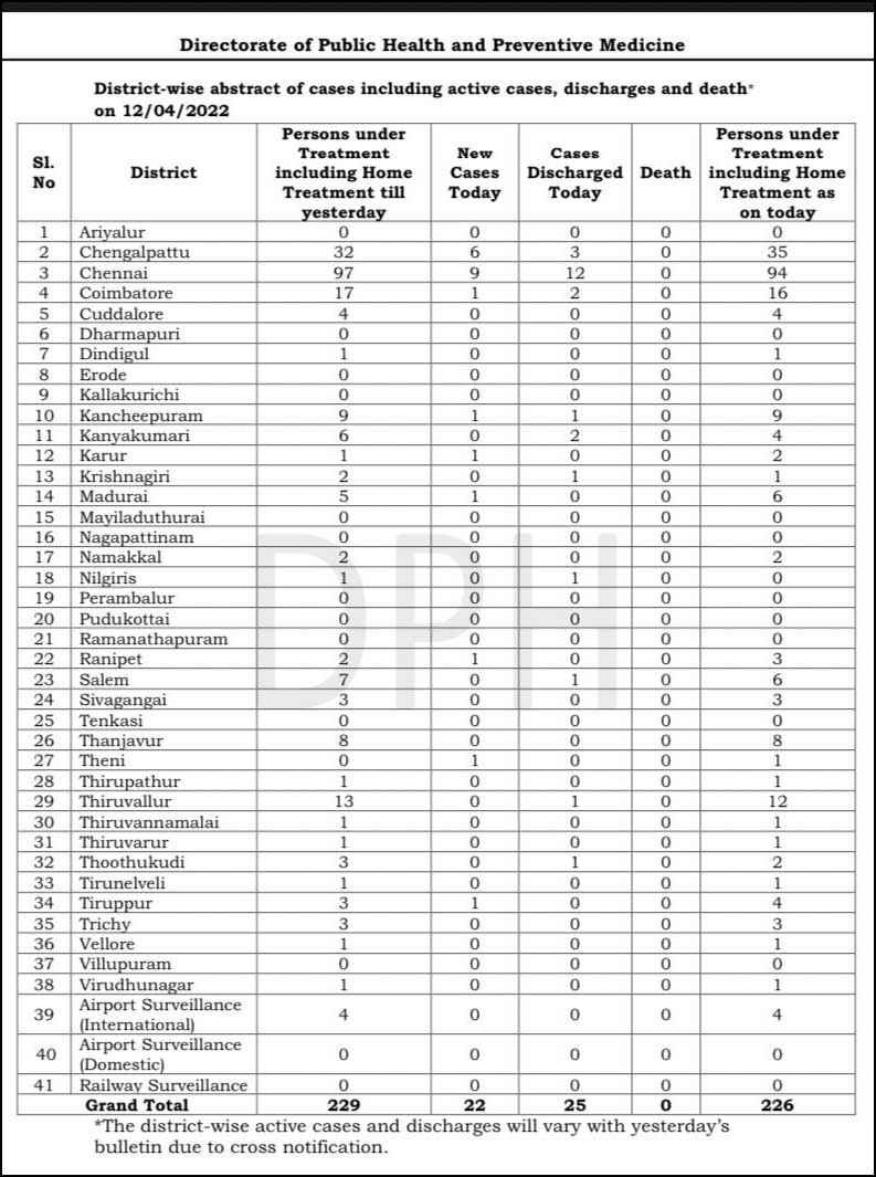 12/04/2022: தமிழ்நாட்டில் கொரோனா பாதிப்பு 22 ஆக குறைந்தது…