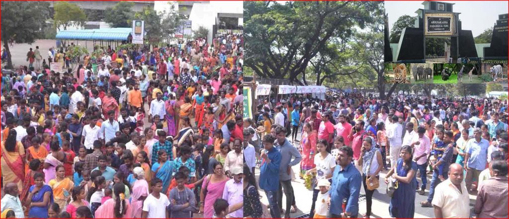 சென்னையை அடுத்த வண்டலூர் பூங்காவில் ஜனவரி 1 முதல் 18ம் தேதி வரை வண்டலூர் பூங்காவுக்கு 1.20 லட்சம் பேர் வருகை தந்து கண்டு களித்துள்ளதாகவும், பொங்கல் பண்டிகையை முன்னிட்டு கடந்த மூன்று நாட்களில் 75 ஆயிரம் வண்டலூர் உயிரியல் பூங்காவிற்கு வருகை தந்துள்ளனர் என்று அறிஞர் அண்ணா உயிரியல் பூங்கா இயக்குநர் தெரிவித்துள்ளார்.