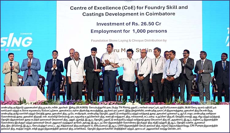 வார்ப்புத் தொழில் மற்றும் பம்புகள் உற்பத்தித் தொழில் ஆகியவற்றில் கோவை முன்னணி மாவட்டமாக திகழ்ந்து வரும் நிலையில், இத்துறைகளை மேலும் மேம்படுத்தும் வகையில், தமிழ்நாடு முதலமைச்சர் இரண்டு திறன்மிகு மையங்களுக்கு அடிக்கல் நாட்டினார்.