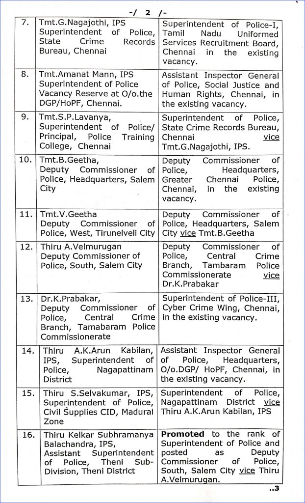 சென்னை தலைமையக எஸ்.பி அமனத் மன், சென்னை சமூக நீதி மற்றும் மனித உரிமை ஆணையத்தின் துணை ஐஜியாகவும் நியமிக்கப்பட்டுள்ளனர்.