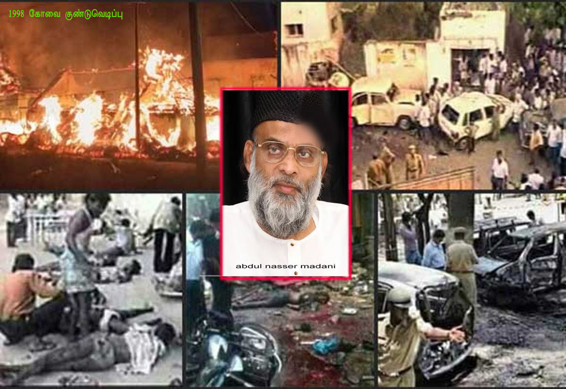 1998ம் ஆண்டு பிப்ரவரி 14-ஆம் நாள் தமிழ்நாடு, கோயம்புத்தூர் நகரில் அடுத்தடுத்து தொடர் குண்டு வெடிப்புகள் நடத்தப்பட்டன. இந்த கொடூர குண்டுவெடிப்பில், 5 ஆண்கள், 10 பெண்கள், ஒரு குழந்தை உட்பட மொத்தம் 46 பேர் கொல்லப்பட்டனர். இந்த குண்டுவெடிப்பை நடத்தியது, கேரளாவைச் சேர்ந்த மக்கள் ஜனநாயக கட்சி என்ற பெயரில் பயங்கரவாதத்தை ஊக்குவித்து வந்த அக்கட்சி தலைவர் அப்துல் நாசர் மதானி மற்றும் அவரது குழுவை சேர்ந்தவர்கள் என்பது கண்டுபிடிக்கப்பட்டது. இது நாடு முழுவதும் அதிர்வலைகளை ஏற்படுத்தியது.