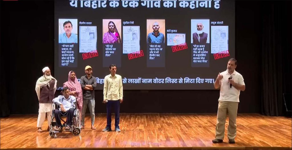 வாக்காளர் பட்டியல் தீவிர திருத்தம் என்பது ஜனநாயகத்தை அழிக்க பாஜகவின் புதிய ஆயுதம் என்று விமர்சித்துள்ள ராகுல்,   ஹரியானாவில் 25 லட்சம் வாக்குகள் திருடப்பட்டு உள்ளது என்பதற்கான  ஆதாரத்தை  வெளியிட்டார்.