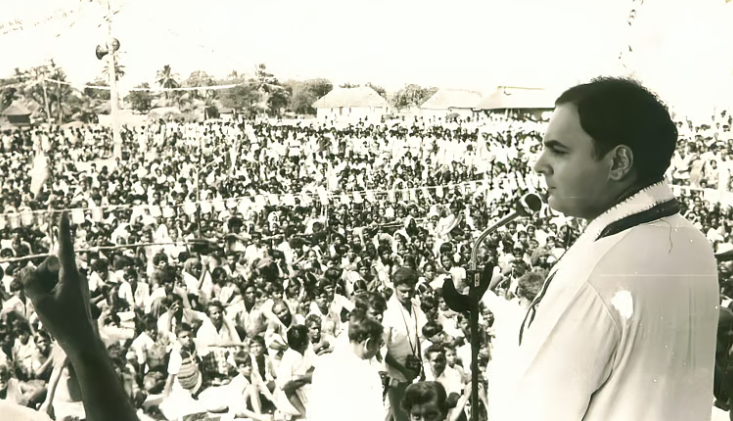 இது ஒரு ராஜீவ், பொதுமக்களின் பாராட்டுக்களில் தெளிவாக மகிழ்ச்சியடைந்தார், கூட்டம் அவரைப் பற்றி இழுத்து, பூக்களைப் பொழிந்தது, சிலர் அவரது கன்னங்களைக் கிள்ளியது; எல்லாவற்றுக்கும் மேலாக, துப்பாக்கி அல்லது கத்தியுடன் ஆயுதம் ஏந்திய யாராலும் அவருக்கு ஆபத்து ஏற்படும் நிலை இருந்தது என்றே கூறவேண்டும்.
