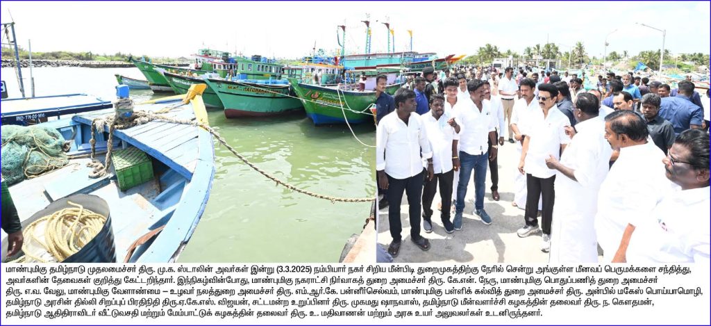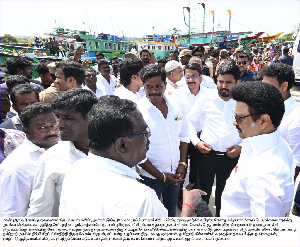 முன்னதாக,   நாகப்பட்டினம் மாவட்டத்தில் ஆய்வு மேற்கொண்ட போது அப்பகுதியில் உள்ள மீனவர் சங்கங்களின் பிரதிநிதிகளை சந்தித்து அவர்களுடன் கலந்துரையாடி அவர்களின் கோரிக்கைகளை கேட்டறிந்தார்.