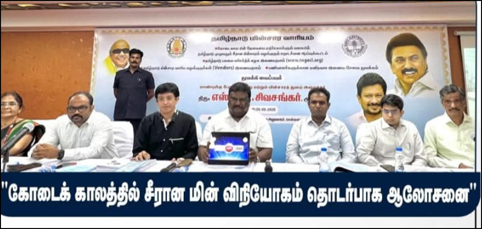 தமிழக மின்வாரியத்தை நவீனமயமாக்கும் பணிகள் நடைபெற்று வருகின்றன. கோடை காலத்தில் மின்வெட்டு ஏற்படாத வகையில், ஏராளமான டிரான்ஸ்பார்மர்கள் அமைக்கப்பட்டுள்ளதுடன், தனியார்களிடம் இருந்து மின் சேவை பெறப்பட்டு, மக்களுக்கு வழங்கப்பட்டு வருகிறது. மேலும், . தமிழகம் முழுவதும் தடையில்லா மற்றும் சீரான மின்சார விநியோகம் செய்வதை உறுதி செய்வதற்காக மேற்கொள்ளப்பட்டு வரும் நடவடிக்கைகள் குறித்த ஆலோசனைக் கூட்டம் நடைபெற்றது.