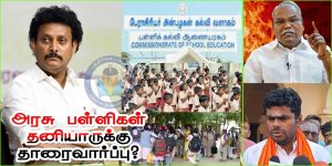 சென்னை: நிதி நெருக்கடியில் சிக்கி உள்ள தமிழ்நாடு அரசு, தமிழகத்தில் 500 அரசுப்பள்ளிகள் தனியாருக்கு தத்துக்கொடுக்க முயற்சிப்பதாக தகவல்கள் பரவி வருகிறது. இதற்கு திமுக கூட்டணி கட்சியான சிபிஐ(எம்) மற்றும் பாரதியஜனதா கட்சிகள் கடும் எதிர்ப்பும், கண்டனங்களையும் தெரிவித்துள்ளனர். “500 அரசுப் பள்ளிகளை தத்தெடுத்து அந்தப் பள்ளிகளுக்குத் தேவையான கட்டமைப்பு வசதிகளை அருகில் உள்ள தனியார் பள்ளிகளின் பங்களிப்புடன் நிறைவேற்றித் தர நடவடிக்கை மேற்கொள்ளப்படும் என பள்ளிக் கல்வித் துறை அமைச்சர் அன்பில் மகேஷ் பேசியிருந்த நிலையில், … Continue reading 500 அரசுப்பள்ளிகள் தனியாரிடம் தாரைவார்ப்பு? தமிழ்நாடு அரசின் நடவடிக்கைக்கு கம்யூனிஸ்டு, பாஜக கடும் எதிர்ப்பு…