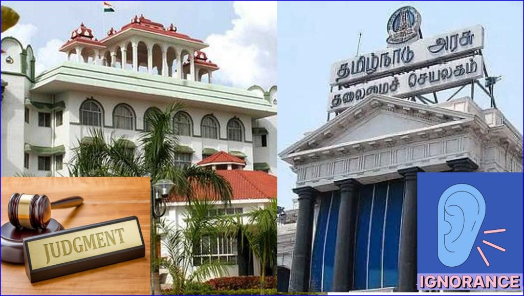 நீதிமன்ற உத்தரவை தமிழ்நாடு அரசும், அதிகாரிகளும் மதிக்காததால், கடந்த இரு மாதங்களில் மட்டும் 550 நீதிமன்ற அவமதிப்பு வழக்குகள் தாக்கல் செய்யப்பட்டு இருப்பதாக, சென்னை உயர்நீதிமன்றம் மதுரை கிளை அதிருப்தி தெரிவித்துள்ளது. அரசு உயர் அதிகாரிகள் நீதிமன்ற உத்தரவை நிறைவேற்ற மாட்டோம் என உறுதிமொழி எடுத்து பணியாற்றி வருகின்றனர் என்றும் கடுமையாக சாடி உள்ளது.