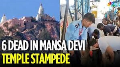 நேற்று காலை உத்தராகண்டின் ஹரித்வாரில் உள்ள மானசா தேவி கோயிலுக்கு வெளியே ஏற்பட்ட கூட்ட நெரிசலில் சிக்கி 6 பேர் உயிரிழந்தனர் மற்றும் பலர் காயமடைந்தனர் இது குறித்து . சட்டம்-ஒழுங்கு ஐ.ஜி. நிலேஷ் பர்னே தகவலின்படி, 9 மணியளவில் பக்தர்கள் கோயிலை நோக்கிச் சென்று கொண்டிருந்தபோது இந்தச் சம்பவம் நிகழ்ந்துள்ளது.