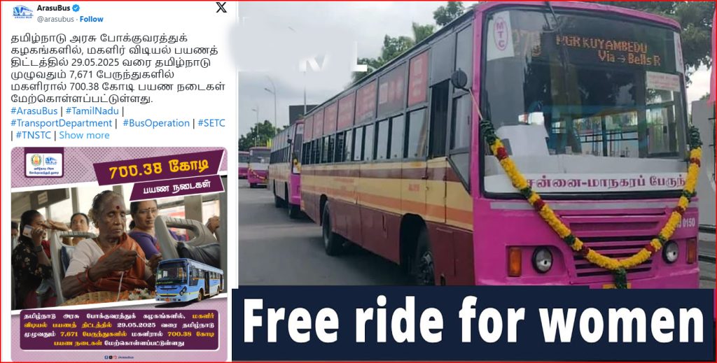 சென்னை: தமிழ்நாடு அரசு பெண்களுக்காக மாநிலம் முழுவதும் இயக்கி வரும் அரசு இலவச  பேருந்துகளில் இதுவரை 700 கோடி பயணங்கள் நடைபெற்றுள்ளது என போக்குவரத்து துறை தெரிவித்து உள்ளது.