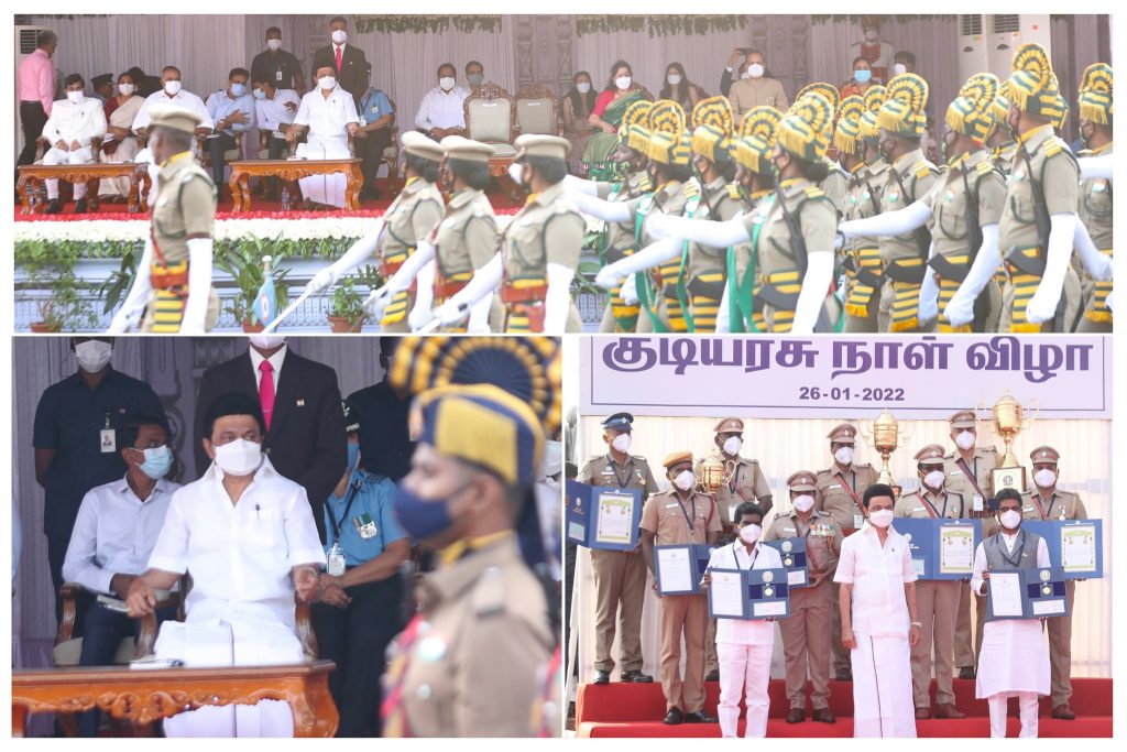 அதைத்தொடர்ந்து, வீரதீரச் செயல்களுக்கான விருதுகள் வழங்கும் நிகழ்வுகள் நடைபெற்றது. விருதுக்கு தேர்வானவர்களுக்கு முதலமைச்சர் ஸ்டாலின் விருதுகளை வழங்கி கவுரவித்தார்.