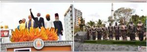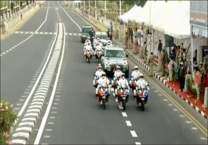 சரியாக 8மணிக்கு தொடங்கிய இந்த விழா சுமார் 8.45 மணி அளவில் தேசியகீதத்துடன் முடிவடைந்தது. விழாவின்பேது தேசிய கொடி ஏற்றியதும், ஹெலிகாப்டர் மூலம் மலர் தூவப்பட்டது. இதையடுத்து, மேடைக்குச் சென்ற ஆளுநர் ஆர்.என்.ரவி, முப்படைகளின் அணிவகுப்பு மரியாதையை ஏற்றார். இதேபோன்று காவல் துறை யினரின் அணிவகுப்பு மரியாதையும் ஆளுநர் ஏற்றார். இதை ஆளுநர், முதல்வர் மற்றும் அமைச்சர்கள், அதிகாரிகள், பொதுமக்கள் கண்டுகளித்தார்.