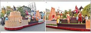 இந்த அணிவகுப்பில் முதல் வாகனமாக வேலுநாச்சியாரின் அலங்கார ஊர்தி இடம் பெற்றது. அதனைத் தொடர்ந்து மருது சகோதரர்கள், பாரதியார் சிலைகள் இடம் பெற்றன. அலங்கார ஊர்திகளில் வீரபாண்டிய கட்டபொம்மன், வீரன் அழகு முத்துக்கோன், உள்ளிட்டோரின் சிலைகள் அடங்கிய அலங்கார ஊர்திகள் அணிவகுத்துச்சென்றன. அலங்கார ஊர்திகள் அணிவகுப்பில் பெரியார், ராஜாஜி, காமராஜர், பசும்பொன் முத்துராமலிங்க தேவர் உள்ளிட்டோரின் சிலைகளும் இடம்பெற்றன