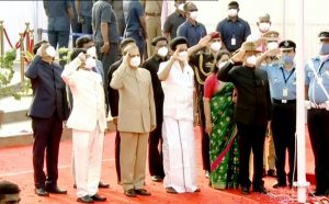 நாட்டின் 73வது குடியரசு தினத்தை முன்னிட்டு தமிழக அரசு சார்பில் குடியரசு தின விழா சென்னை மெரினா கடற்கரை காமராஜர் சாலையில் கொரோனா பாதுகாப்புகளுடன் நடைபெற்றது. சென்னை கடற்கரை சாலையில் முவர்ண கொடியை ஆளுநர் ஆர்.என்.ரவி. ஏற்றி வைத்தார் ஆளுநராக பொறுப்பேற்ற பிறகு முதன்முறையாக தமிழ்நாட்டில் தேசியக் கொடியை ஆளுநர் ஆர்.என்.ரவி. ஏற்றி வைத்தார். இந்த நிகழ்ச்சியில் முதல்வர் ஸ்டாலின் உள்பட அமைச்சர்கள், அதிகாரிகள் என ஏராளமானோர் கலந்துகொண்டனர்.