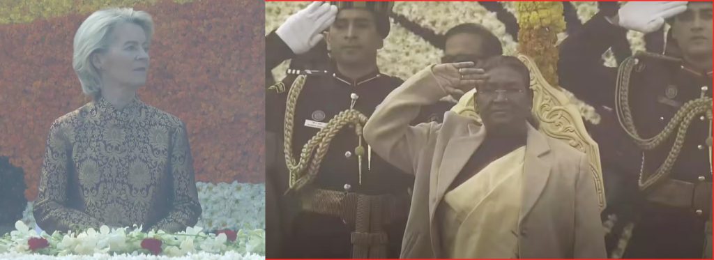 டெல்லி: நாட்டின் 77வது குடியரசு தின விழா ஒட்டி டெல்லியில் குடியரசுத் தலைவர் திரவுபதி முர்மு தேசியக் கொடி ஏற்றினார். சிறப்பு விருந்தினராக ஐரோப்பிய கவுன்சில் தலைவர் அன்டோனியா, ஐரோப்பிய ஆணைய தலைவர் உர்சுலா பங்கேற்றுள்ளனர்.