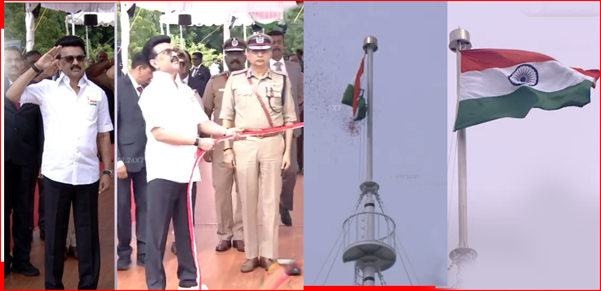 இந்த நிலையில், முதலமைச்சர் மு.க.ஸ்டாலின் இன்று காலை கோட்டை கொத்தளத்தில் தேசிய கொடி ஏற்றி மரியாதை செய்தார். முன்னதாக அவருக்கு முப்படைகளின் அணிவகுப்பு மரியாதை, காவல்துறை அளிக்கப்பட்டது. அதை ஏற்று கொத்தளத்துக்கு வந்தவர், கோட்டை கொத்தளத்தில் முதலமைச்சர் மு.க.ஸ்டாலின் தேசியக் கொடியை ஏற்றிவைத்து மரியாதை செலுத்தினார்.
