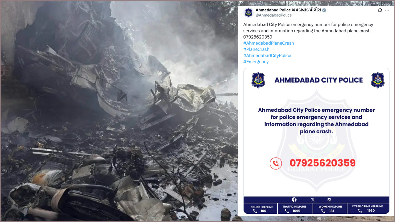 Ahmedabad plane crash – Emergency helpline announced. control room at phone number 079-232-51900 & mobile number 9978405304.