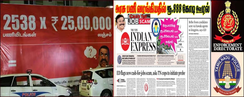 அந்த பேனரில் , ‘2,538 பணியிடங்களுக்கு 25 லட்சம் என்றால், மொத்த லஞ்சப்பணம் எவ்வளவு’ என்று பொது மக்களில் ஒருவர் கேள்வி கேட்பதுபோல் சித்தரிக்கப்பட்டிருந்தது. இது சமூக வலைதளங்களில் வைரலாகி வருகிறது.