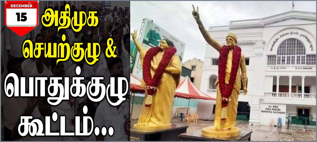 சென்னை: அதிமுக செயற்குழு மற்றும் பொதுக்குழு கூட்டம் டிசம்பர் 15ந்தேதி நடைபெறும் என அதிமுக தலைமைக்கழகம் அறிவிப்பு வெளியிட்டு உள்ளது.