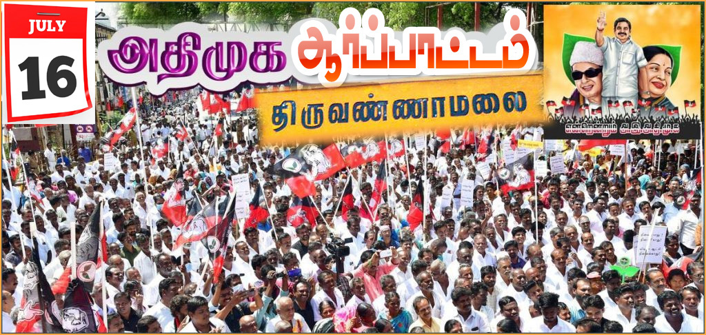 அ.தி.மு.க. திருவண்ணாமலை கிழக்கு மாவட்டத்தின் சார்பில் 16-ந்தேதி (புதன்கிழமை) காலை 10 மணியளவில், திருவண்ணாமலை மாநகராட்சி அண்ணாசிலை அருகில் மாபெரும் கண்டன ஆர்ப்பாட்டம் நடைபெறும்.இந்த கண்டன ஆர்ப்பாட்டம் முன்னாள் அமைச்சர்கள் வீரமணி தலைமையிலும்; ராமச்சந்திரன் முன்னிலையிலும் நடைபெறும்.
