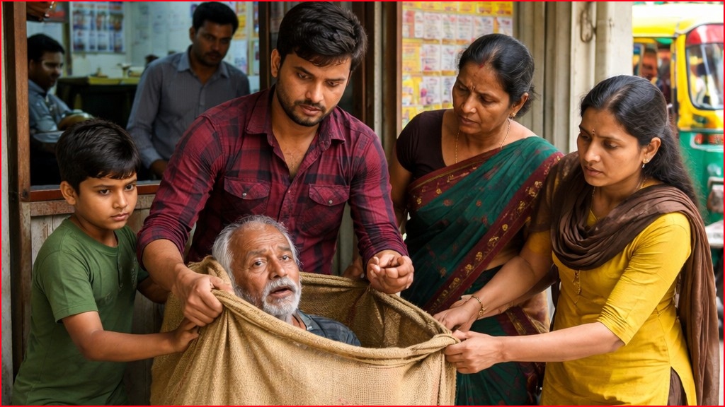 இதையடுத்து அந்த கும்பல், இந்த கூரியர் இல்லைன்னா வேறு கூரியர் இல்லையா வாங்க நாம வேற நல்ல கூரியரை கண்டுபிடிப்போம் எனக் கூறி அங்கிருந்து முதியவரை மீண்டும் மூட்டைக்குள் கட்டிஎடுத்து சென்றுள்ளனர். இதை கண்டட அக்கம் பக்கத்து கடைகளில் இருந்தவர்கள் பார்த்து வேதனை அடைந்ததுடன், சிலர் தங்கள் செல்போனில் படம் பிடித்தனர்.