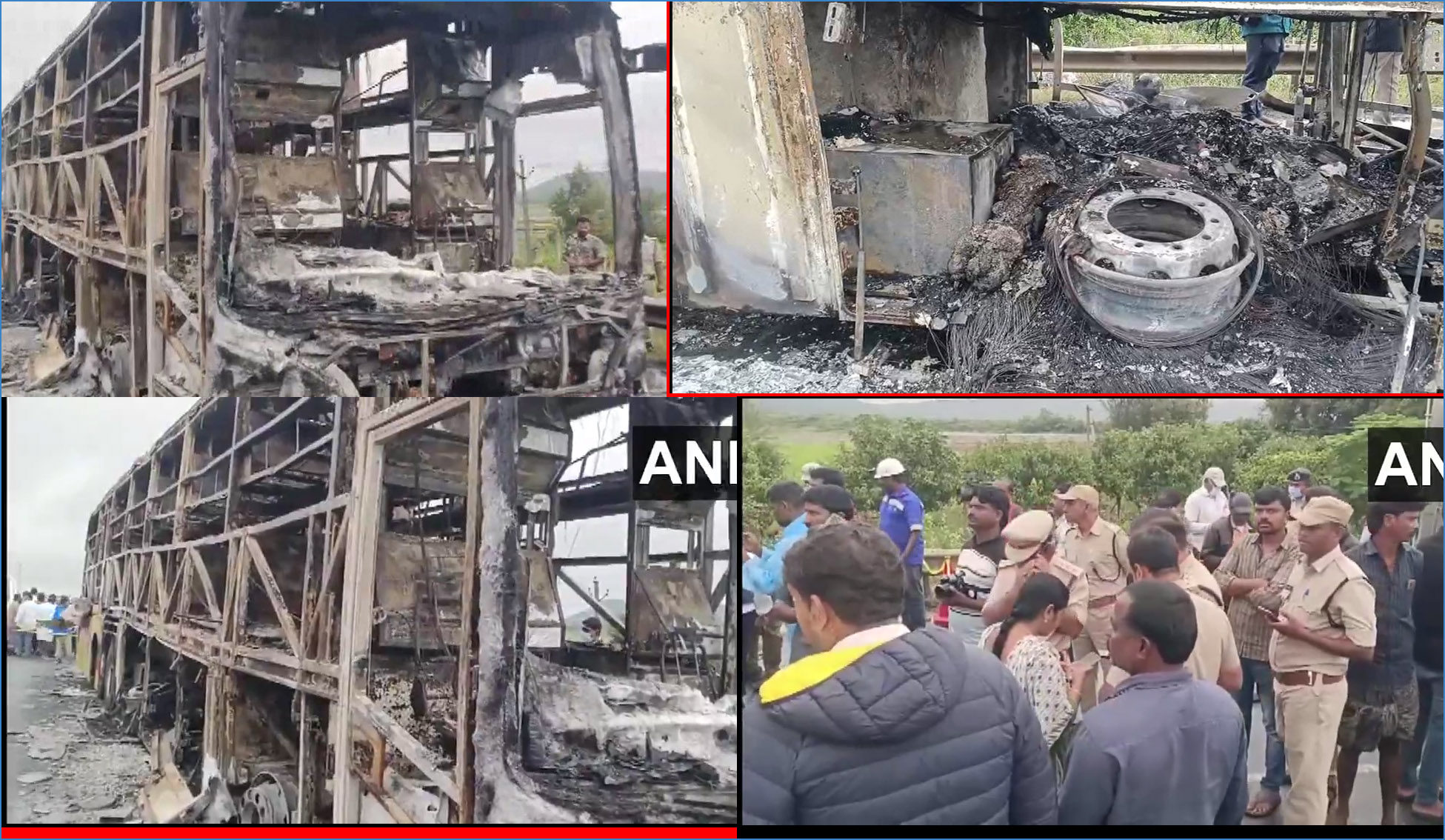 இதனிடையே, பேருந்தில் ஏற்பட்ட தீவிபத்தில் சிக்கி 15 பேர் உயிரிழந்த சம்பவத்திற்கு ஆந்திர மாநில முதல்-மந்திரி சந்திரபாபு நாயுடு இரங்கல் தெரிவித்துள்ளார்.