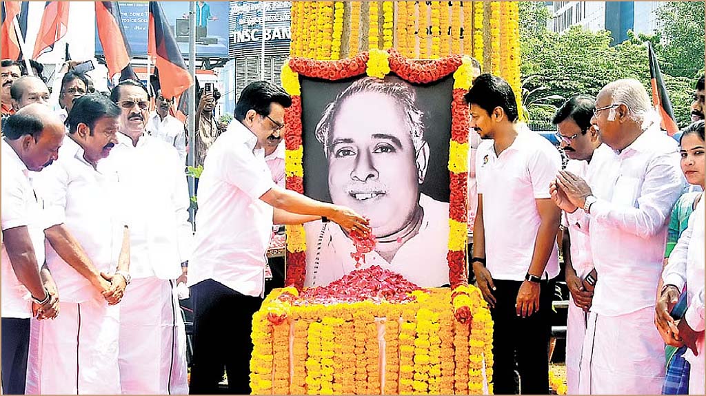 ஓமந்தூரார் அரசினர் தோட்டத்தில் உள்ள அண்ணா சிலையில் இருந்து அண்ணா சதுக்கம் வரை  முதல்வரும், திமுக தலைவருமான மு.க.ஸ்டாலின் தலைமையில் அமைதி பேரணி நடைபெற்றது. மதில் ஆயிரக்கணக்கானோர் கலந்துகொண்டனர். இதையடுத்து,  அண்ணா மற்றும் கலைஞர் நினைவிடத்தில் முதலமைச்சர் மு.க.ஸ்டாலின் மரியாதை செலுத்தினார்.