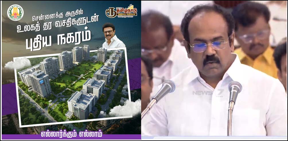 சென்னைக்கு அருகே 2000 ஏக்கரில் புதிய நகரம் அமைக்கப்படும். நவீன வசதிகள் கொண்டதாக இந்நகரம் அமையும்.