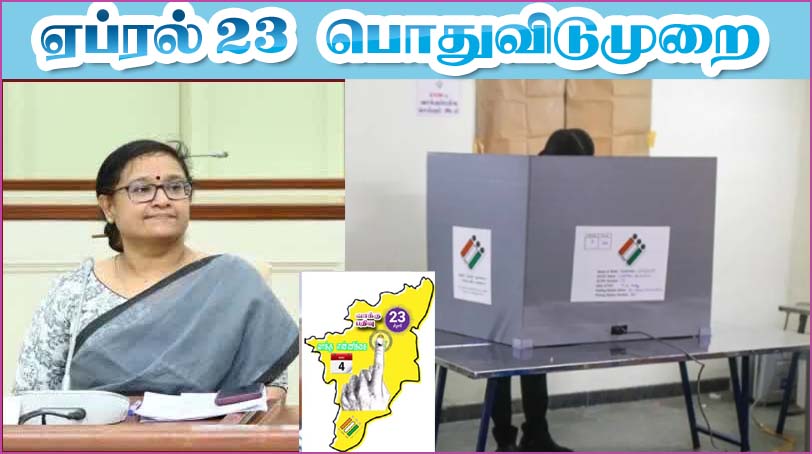 தமிழக சட்டமன்றத் தேர்தலை முன்னிட்டு நாளை (ஏப்.23) அரசு மற்றும் தனியார் நிறுவனங்களைச் சேர்ந்த அனைத்து ஊழியர்களுக்கும் சம்பளத்துடன் கூடிய விடுமுறை அளிக்க தலைமைத் தேர்தல் அதிகாரி அர்ச்சனா பட்நாயக் உத்தரவிட்டுள்ளார்.