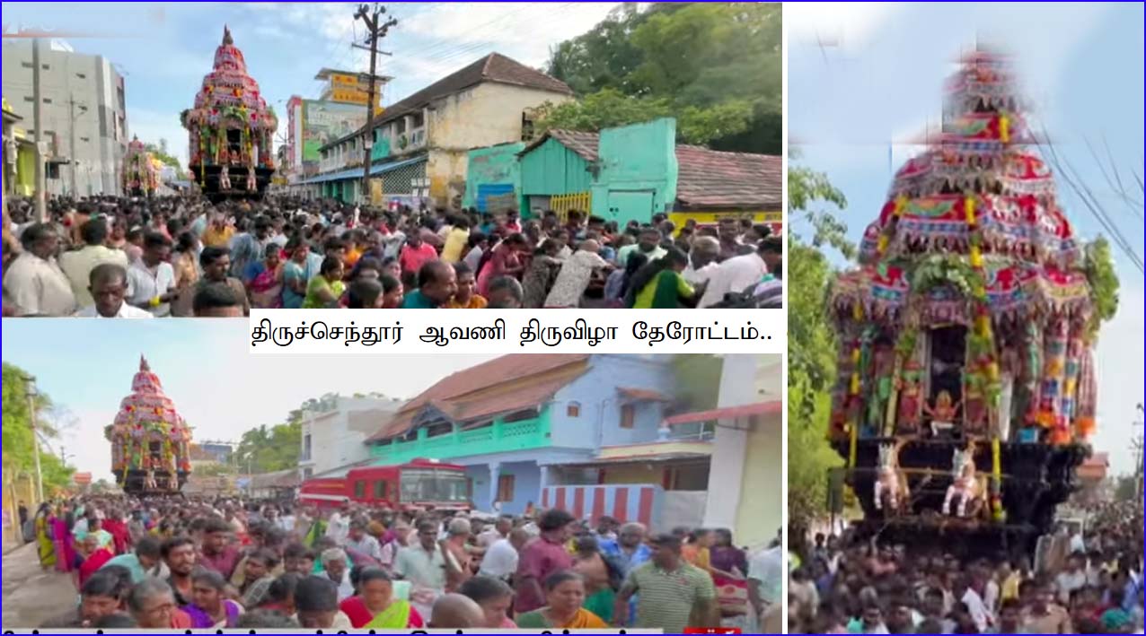 தூத்துக்குடி: திருச்செந்தூர் கோவிலில் ஆவணித்திருவிழா தேரோட்டம் இன்று காலை கோலாகலமாக நடைபெற்றது. பல்லாயிரக்கணக்கான பக்தர்கள் அரோகரா கோஷத்துடன் தேரை இழுத்தனர்.