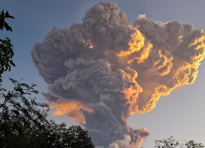 இந்தோனேசிய தீவுகளின் கிழக்கில் எரிமலை வெடித்ததில், வானத்தில் 10 கி.மீ உயரத்திற்கு கோபுரம் போல் சாம்பல் படர்ந்தது, இதனால் இந்தோனேசிய ரிசார்ட் தீவான பாலிக்குச் செல்லும் மற்றும் அங்கிருந்து புறப்படும் விமானங்கள், இன்று (ஜூன் 18) ரத்து செய்யப்பட்டன.