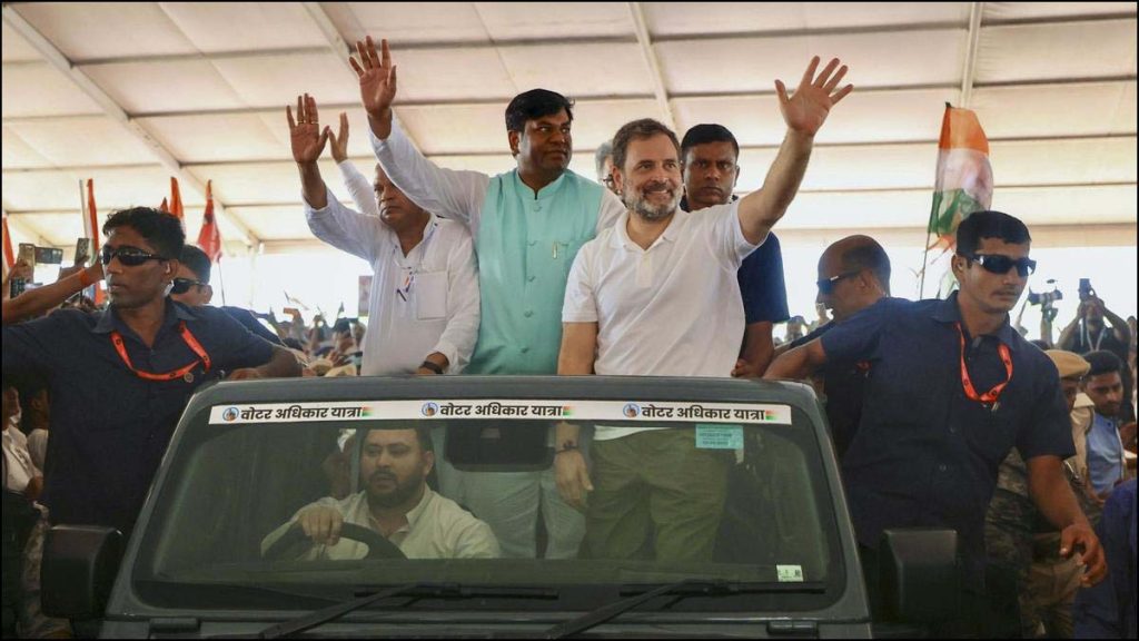 பாட்னா: பீகார் மாநிலத்தில், தேர்தல்ஆணையத்தின் தீவிர வாக்காளார் பட்டியல் சீர்திருத்தம் நடைபெறுவதற்கு எதிராக, மக்களை எதிர்க்கட்சி தலைவர் ராகுல்காந்தி தலைமை யில் மாநில எதிர்க்கட்சிகளின் 16 நாட்கள் சுமார் 1300 கிமீ தூரம் நடைபெற உள்ளது. இநத மெகா வாக்குரிமை பேரணி (‘Vote Adhikar Yatra’ ) நேற்று (ஆகஸ்டு 17)ந்தேதி அன்று தொடங்கி நடைபெற்று வருகிறது. பீகாா் மாநில சட்டப்பேரவைத் தோ்தல் இந்த மாதம் இறுதியில் நடைபெற உள்ளது. இங்குள்ள வாக்காளர் பட்டியலில் வெளிநாடுகளை அகதிகள் … Continue reading பீகார் எஸ்ஐஆர்: எதிர்க்கட்சி தலைவர் ராகுல்காந்தி தலைமையில் நடைபெற்று வரும் 16 நாட்கள் வாக்குரிமைப் பேரணி….