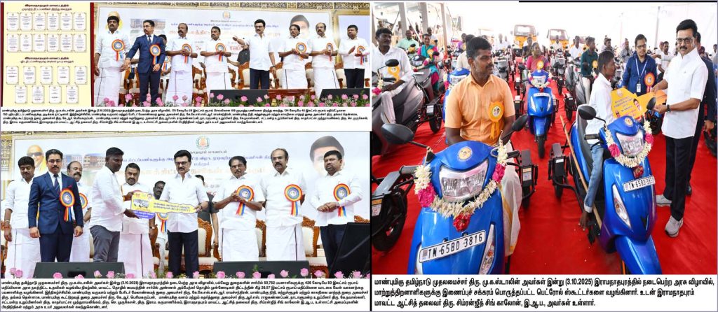ராமநாதபுரத்தில் மக்கள் நலத்திட்டங்களை தொடங்கி வைத்து பேசிய முதல்வர் ஸ்டாலின், திராவிட முன்னேற்றக் கழகத்தின் (திமுக) தலைவரான முதல்வர் ஸ்டாலின், தமிழ்நாட்டின் பிரதான எதிர்க்கட்சியான அகில இந்திய அண்ணா திராவிட முன்னேற்றக் கழகத்தின் (அதிமுக) பொதுச் செயலாளர் எடப்பாடி பழனிசாமி (இபிஎஸ்) மாநிலத்தில் அடுத்த ஆண்டு சட்டமன்றத் தேர்தலுக்கு முன்னதாக பாஜகவில் மீண்டும் இணைந்ததை விமர்சித்தார்.