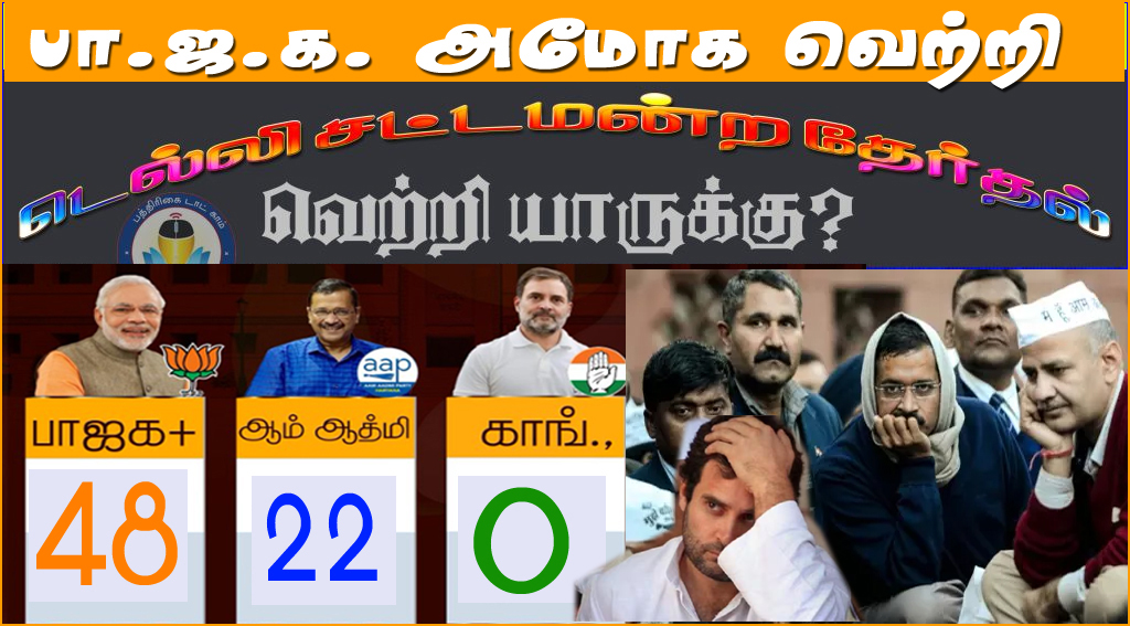மும்முனை போட்டி கண்ட டெல்லி சட்டமன்ற தேர்தலில் 70 தொகுதிகளிலும் போட்டியிட்ட காங்கிரஸ் கட்சி, மூன்றாவது முறையாக எந்தவொரு தொகுதி யிலும், வெற்றிபெறாத நிலையில், பா.ஜ., 68 தொகுதிகளில் போட்டியிட்ட பாஜக 47 தொகுதிகளில் வெற்றியை உறுதி செய்து ஆட்சியை கைப்பற்றி உள்ளது. மேலும், ஏற்கனவே மூன்று முறை ஆட்சியை கைப்பற்றி ஆட்சி செய்த ஆம் ஆத்மி 21ல் வெற்றி பெற்று எதிர்க்கட்சி வரிசையில் அமர்கிறது.