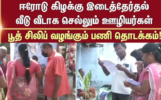 நடைபெற உள்ள ஈரோடு கிழக்கு தொகுதி தேர்தலுக்கான பூத் ஸ்லிப் வழங்கும் பணி தொடங்கப்பட்டுள்ளது.