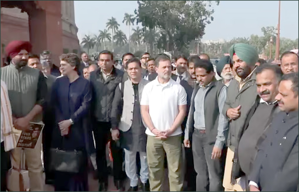 இதனைத் தொடர்ந்து நாடாளுமன்ற வளாகத்தில் மக்களவை எதிர்க்கட்சித் தலைவர் ராகுல் காந்தி தலைமையில் இடைநீக்கம் செய்யப்பட்ட எம்பிக்கள் போராட்டம் நடத்தினர்.