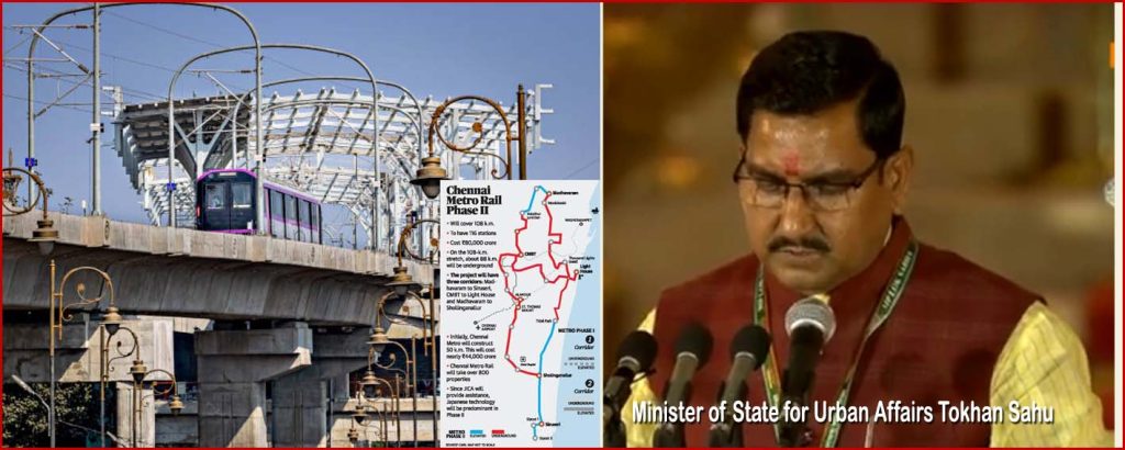 சென்னை மெட்ரோ ரயில் 2-ம் கட்ட திட்டத்திற்கு மத்திய அரசு ரூ 8,000 கோடிக்கும் அதிகமாக நிதியை விடுத்துள்ளதாகவும் 2025-26 ஆம் ஆண்டு மத்திய அரசு இதுவரை ரூ.3, 000 கோடி நிதி ஒதுக்கியுள்ளதாகவும் மத்திய இணை அமைச்சர் தோகன் சாஹு மக்களவையில் தகவல் தெரிவித்து உள்ளார்.