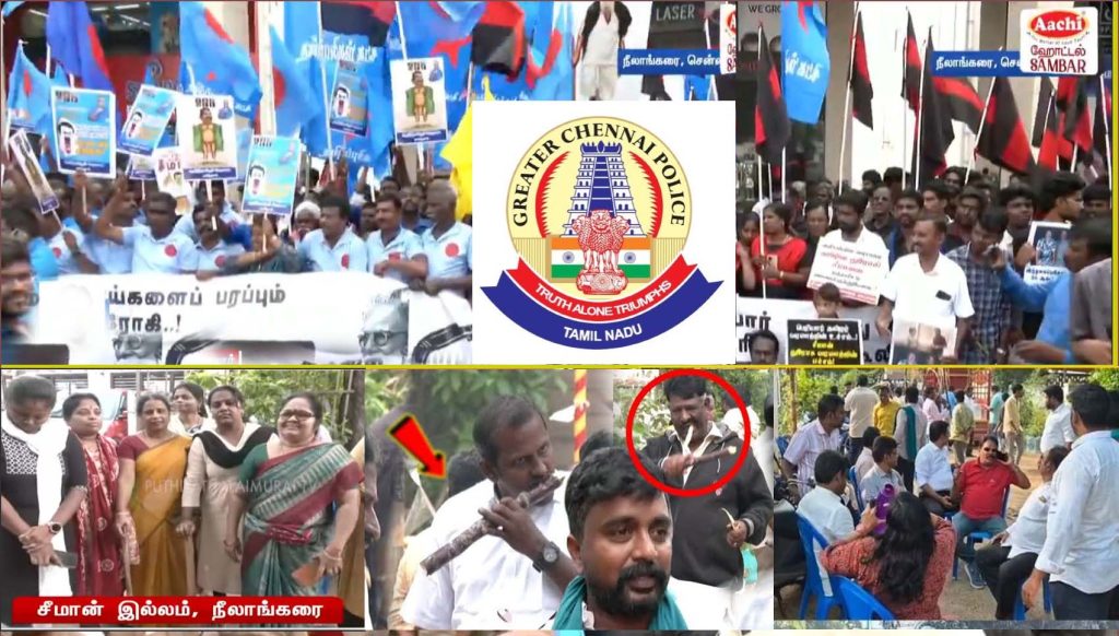 இந்த நிலையில், போராட்டத்தில் ஈடுபட்ட  தங்களை தாக்க உருட்டுக்கட்டைகளுடன் நாம் தமிழர் கட்சியினர்  150 பேர் நின்றிருந்தாக பெரியாரிய அமைப்புகள்  காவல்துறையில் புகார் கொடுத்துள்ளனர்.