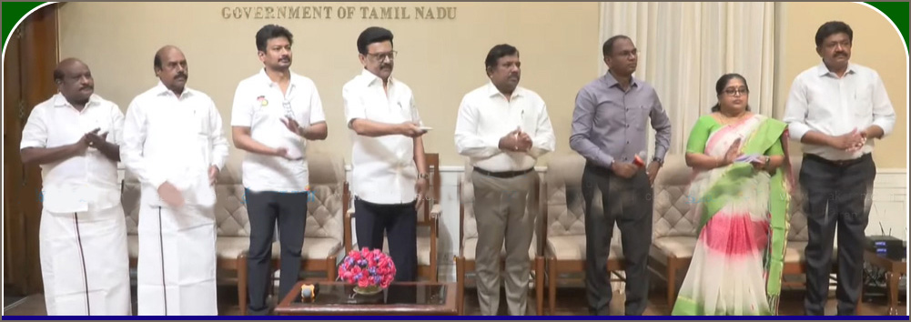 சென்னை தலைமைச்செயலகத்தில் இன்று காலை நடைபெற்ற நிகழ்ச்சியில் முதலமைச்சர் ஸ்டாலின், காணொளி காட்சி மூலம் புதிய கல்லூரிகள் மற்றும் கல்வித்துறை சார்ந்த கட்டிங்கள் மற்றும் குடியிருப்புகளை திறந்த வைத்தார். இந்த நிகழ்ச்சியில் துணைமுதல்வர் உதயநிதி, உயர்கல்வித்துறை அமைச்சர் கோவி செழியன், பள்ளிக்கல்வித்துறை அமைச்சர் அன்பில் மகேஸ் மற்றும் அதிகாரிகள் உடனிருந்தனர்.
