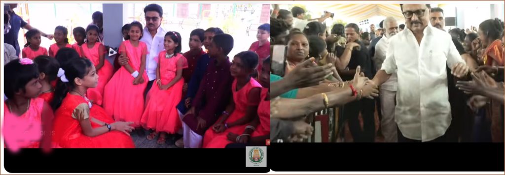 வடசென்னை வளர்ச்சித் திட்டத்தின்கீழ் ஏழுகிணறு பகுதியில் நவீன வசதிகளுடன் ரூ.147 கோடி மதிப்பில் கட்டப்பட்டுள்ள 776 அடுக்குமாடி குடியிருப்புகள் கொண்ட முதல்வர் நகர்ப்புற குடியிருப்புகளை முதலமைச்சர் மு.க.ஸ்டாலின் திறந்து வைத்தார். அந்த குடியிருப்புக்கான ஆணைகளை பயனர்களுக்கு வழங்கினார். இதையடுத்து அந்த குடியிருப்புகளை ஆய்வு செய்தவர், நகர்ப்புற குடியிருப்புகள் வளாகத்தில் உள்ள அங்கன்வாடி மையங்களை பார்வையிட்டு, அங்குள்ள குழந்தைகளுடன் குதுகலமாக கலந்துரையாடியதுடன், அவர்களுக்கு முதலமைச்சர் மு.க.ஸ்டாலின் பரிசுகள் வழங்கினார்.