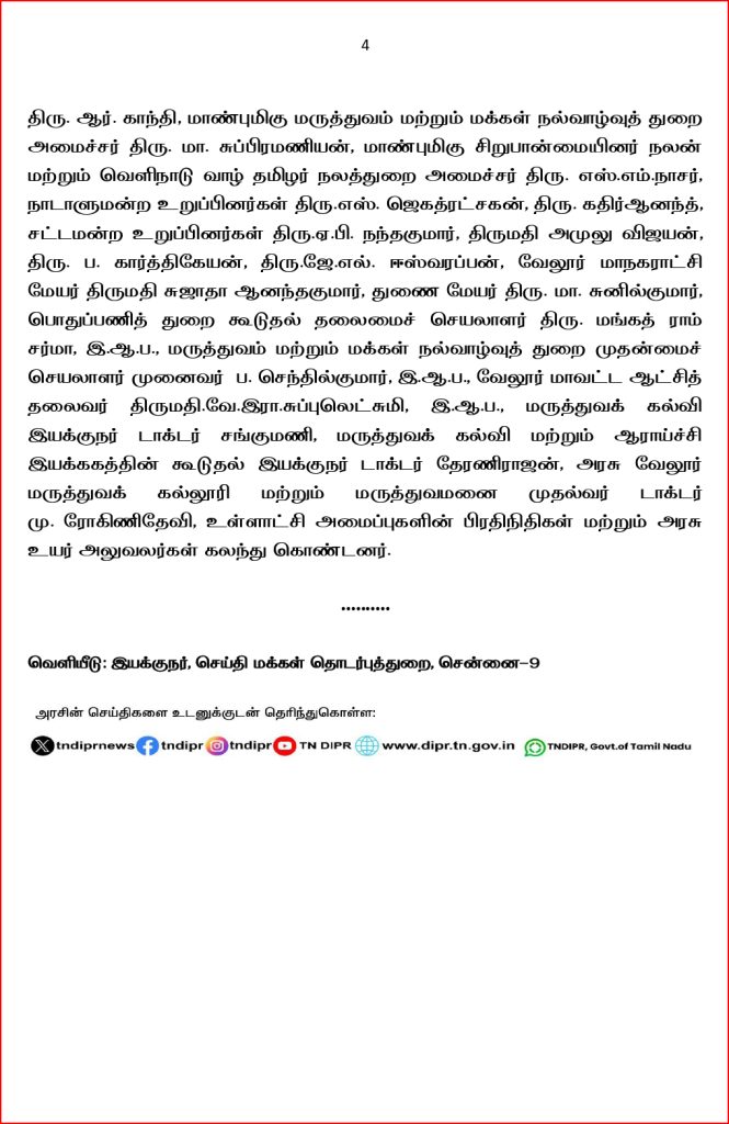 வேலூர்: வேலூரில் அரசு பல்நோக்கு உயர் சிறப்பு மருத்துவமனையை திறந்து வைத்த முதல்வர் ஸ்டாலின் தொடர்ந்து நடைபெற்ற அரசு நிகழ்ச்சியில், 21,776 பயனாளிகளுக்கு வீட்டுமனைப் பட்டாக்களை வழங்கினார்.