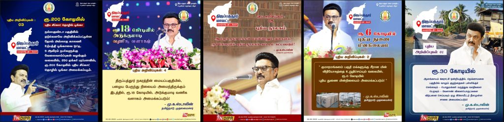 திருப்பத்தூர்: இன்று திருப்பத்தூரில் நடைபெற்ற அரசு நிகழ்ச்சியில் கலந்துகொண்ட முதலமைச்சர் ஸ்டாலின், திருப்பத்தூர் மாவட்டத்துக்கு 5 புதிய அறிவிப்புகளை வெளியிட்டார்.