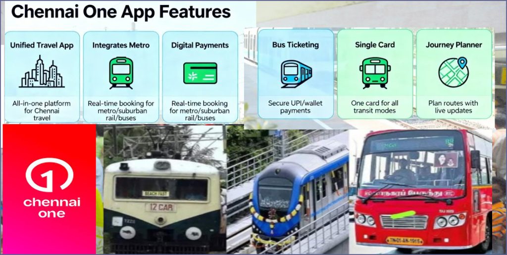 ‘Chennai One’ – சென்னை ஒன்’ செயலி பயணிகள் இனி ஒரே செயலியின் மூலம் மூன்று முக்கிய பொதுப் போக்குவரத்து முறைகளிலும் பயணம் செய்யலாம். வெவ்வேறு மொபைல் செயலிகளைப் பதிவிறக்கவோ அல்லது பல ஸ்மார்ட் கார்டுகளை எடுத்துச் செல்லவோ தேவையில்லை. ‘சென்னை பெருநகரப் பகுதியில் பயணத் திட்டமிடுதலுடன் கூடிய ஒருங்கிணைந்த டிக்கெட்’ என்ற ஆய்வின் முடிவுகளின் அடிப்படையில் ‘சென்னை ஒன்’ செயலி உருவாக்கப்பட்டுள்ளது