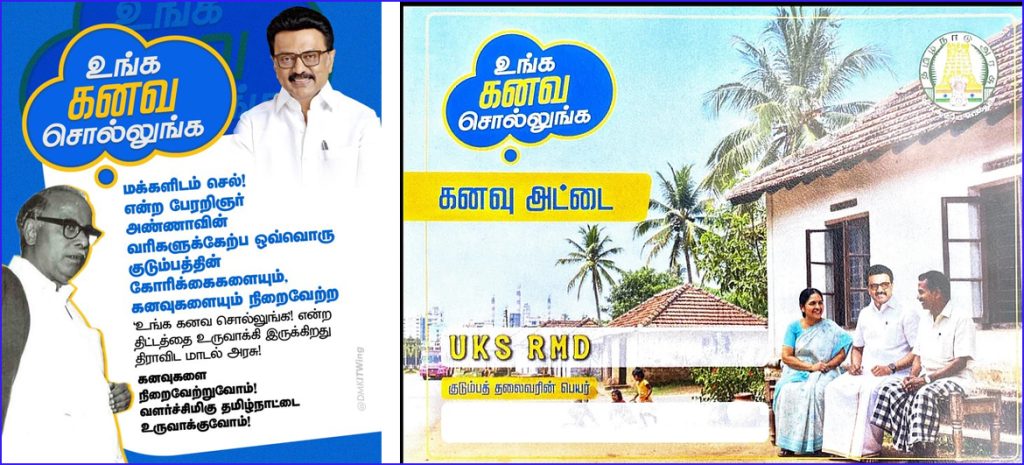 இந்த நிலையில், கடந்த ஐந்து ஆண்டுகளில் அமல்படுத்தப்பட்ட பல்வேறு அரசு திட்டங்களில் பயனடைந்துள்ள பயனாளிகளின் தரவுகள் மற்றும் விவரங்களை உறுதிப்படுத்தவும், திட்டங்களின் தற்போதைய செயல்பாட்டு நிலை குறித்து பொதுமக்களின் கருத்தினை அறியவும், மக்களின் எதிர்கால கனவுகள் மற்றும் தேவைகளைக் கண்டறியவும், அவர்களது வசிப்பிடங்களுக்கே சென்று நேரடியாக அறிந்து கொள்ளும் “உங்க கனவ சொல்லுங்க” என்ற திட்டத்தினை முதல்வர் மு.க.ஸ்டாலின் தொடங்கி வைத்தார்.