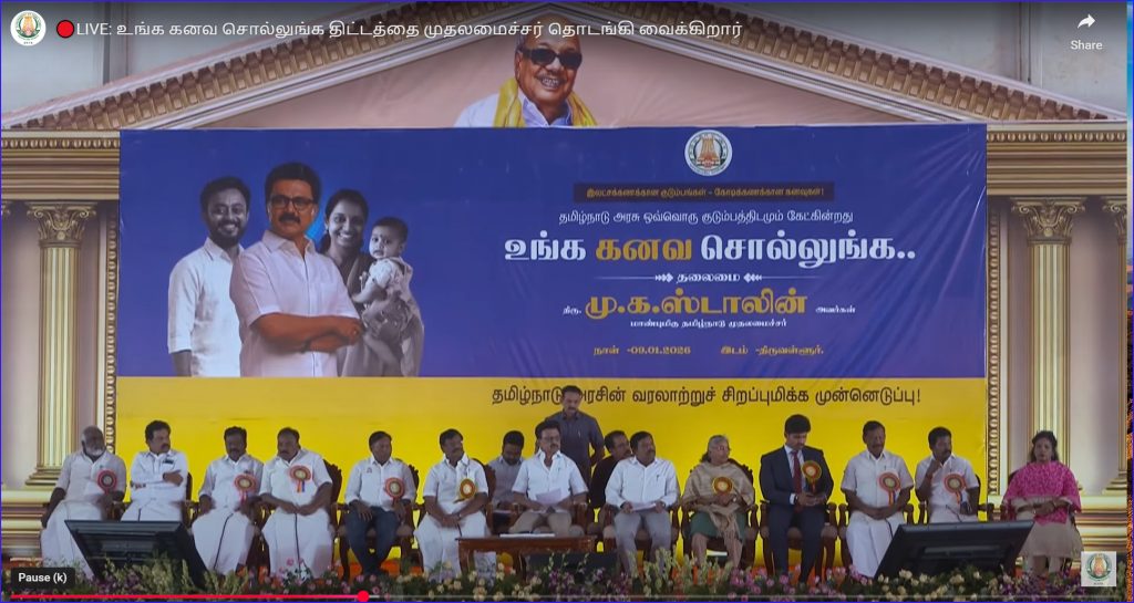 தமிழ்நாடு முதலமைச்சர் அவர்கள் உங்க கனவ சொல்லுங்க” திட்டத்தினை இன்று (9.1.2026) திருவள்ளுர் மாவட்டம், பொன்னேரி வட்டம், பாடியநல்லூரில் தொடங்கி வைத்தார். அனைத்து மாவட்டங்களிலும் இத்திட்டம் அமைச்சர் பெருமக்களால் அன்றைய தினமே தொடங்கி வைக்கப்படுகிறது.